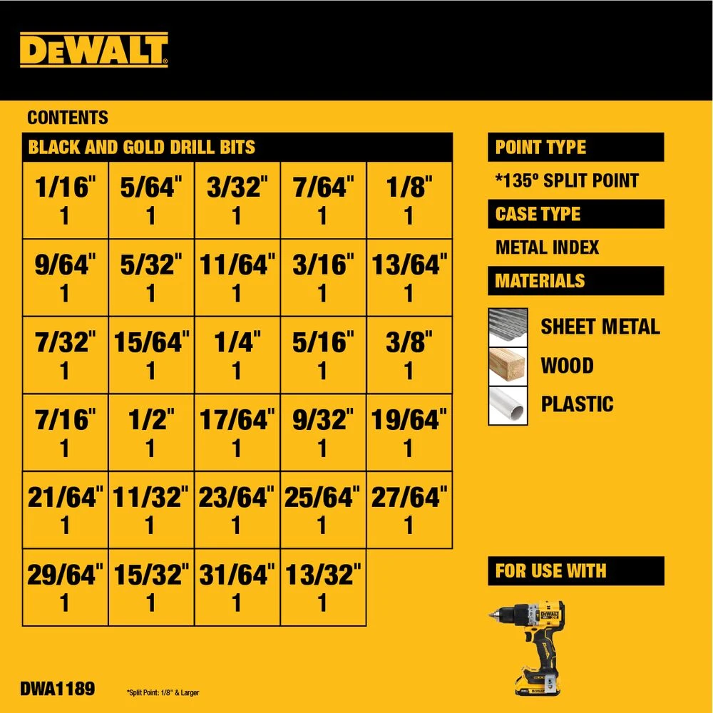 DEWALT 29 -Piece Assorted X Black And Gold Coated HSS Jobber Length Twist Drill Bit Set