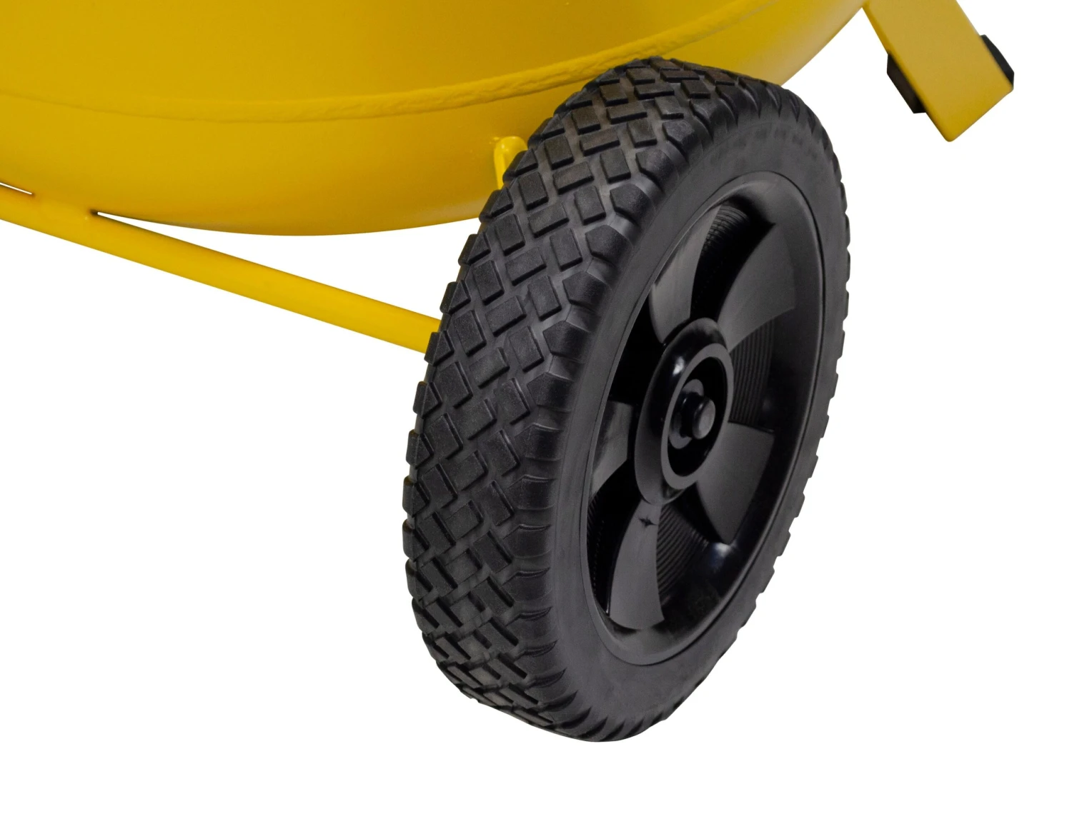 Equipped with high flow regulator, tank and tool pressure gauges, quick coupler, on/off switch, wheels, and handle with grip