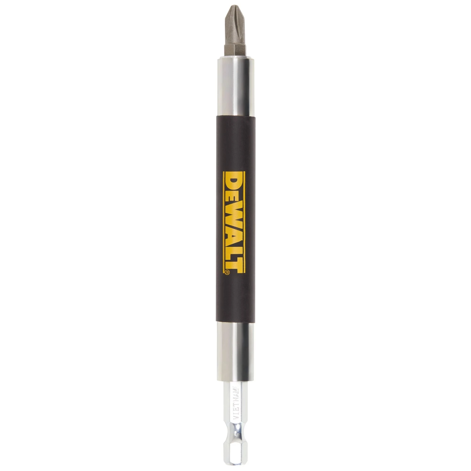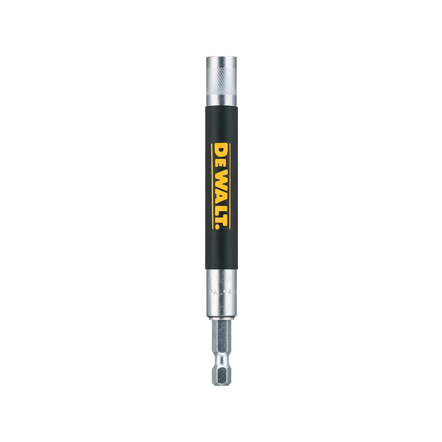 The Dewalt drive guide features a 6-in drive guide and 3 screwdriving bits.