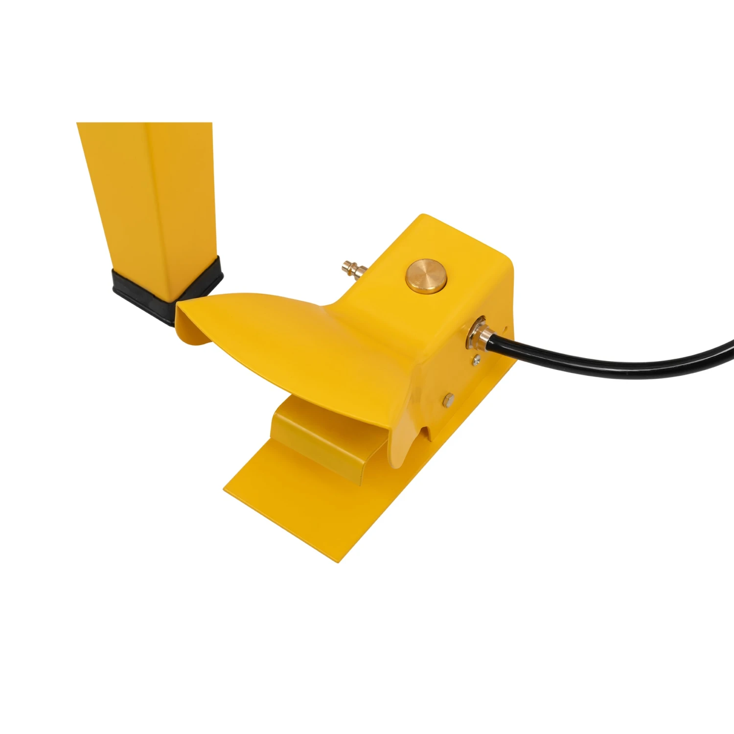Foot operated gun pedal to minimize hand fatigue during operation.