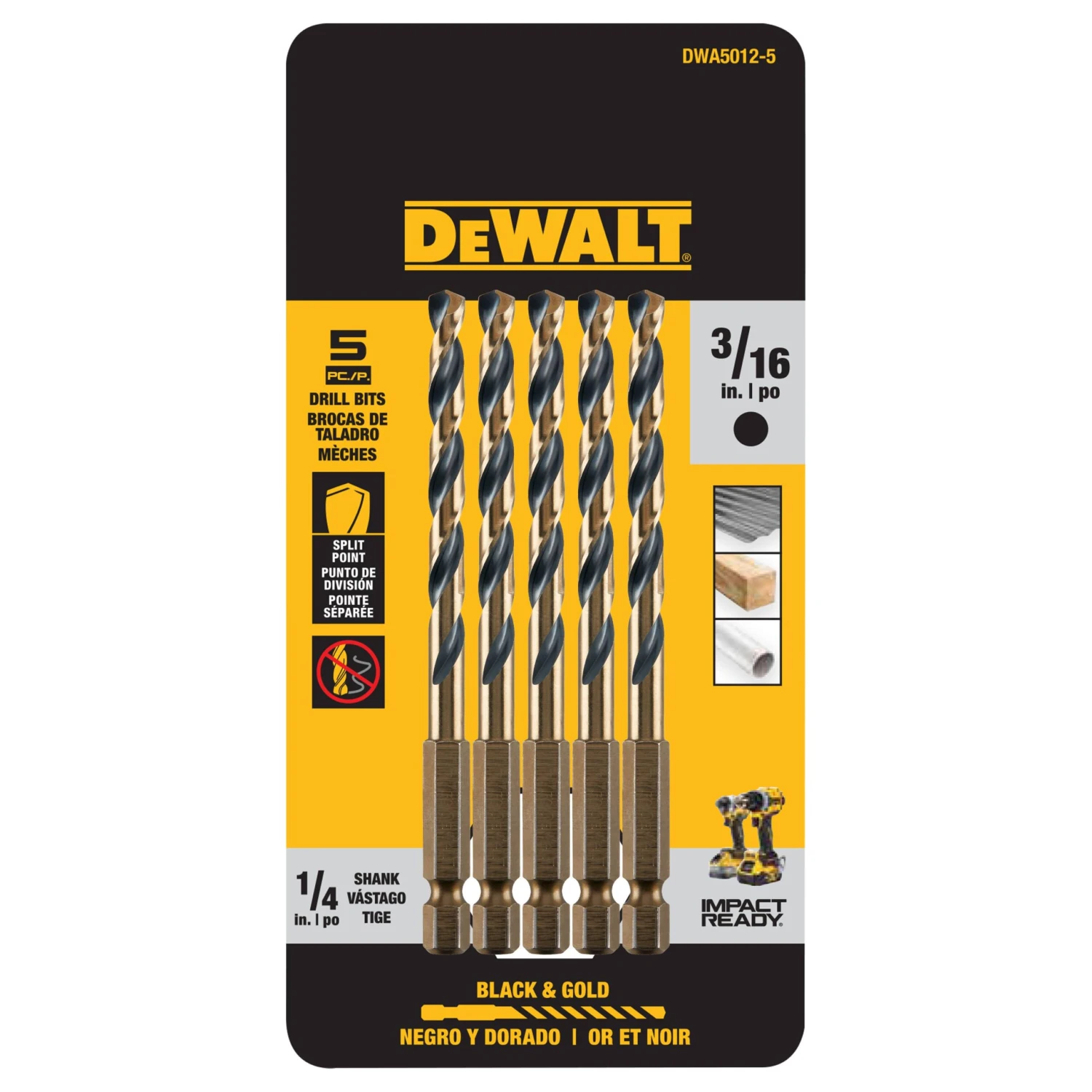 DEWALT BLACK GOLD IMPACT READY 5 -Piece 3/16-in X 3-3/5-in Black And Gold Coated HSS Jobber Length Twist Drill Bit Set
