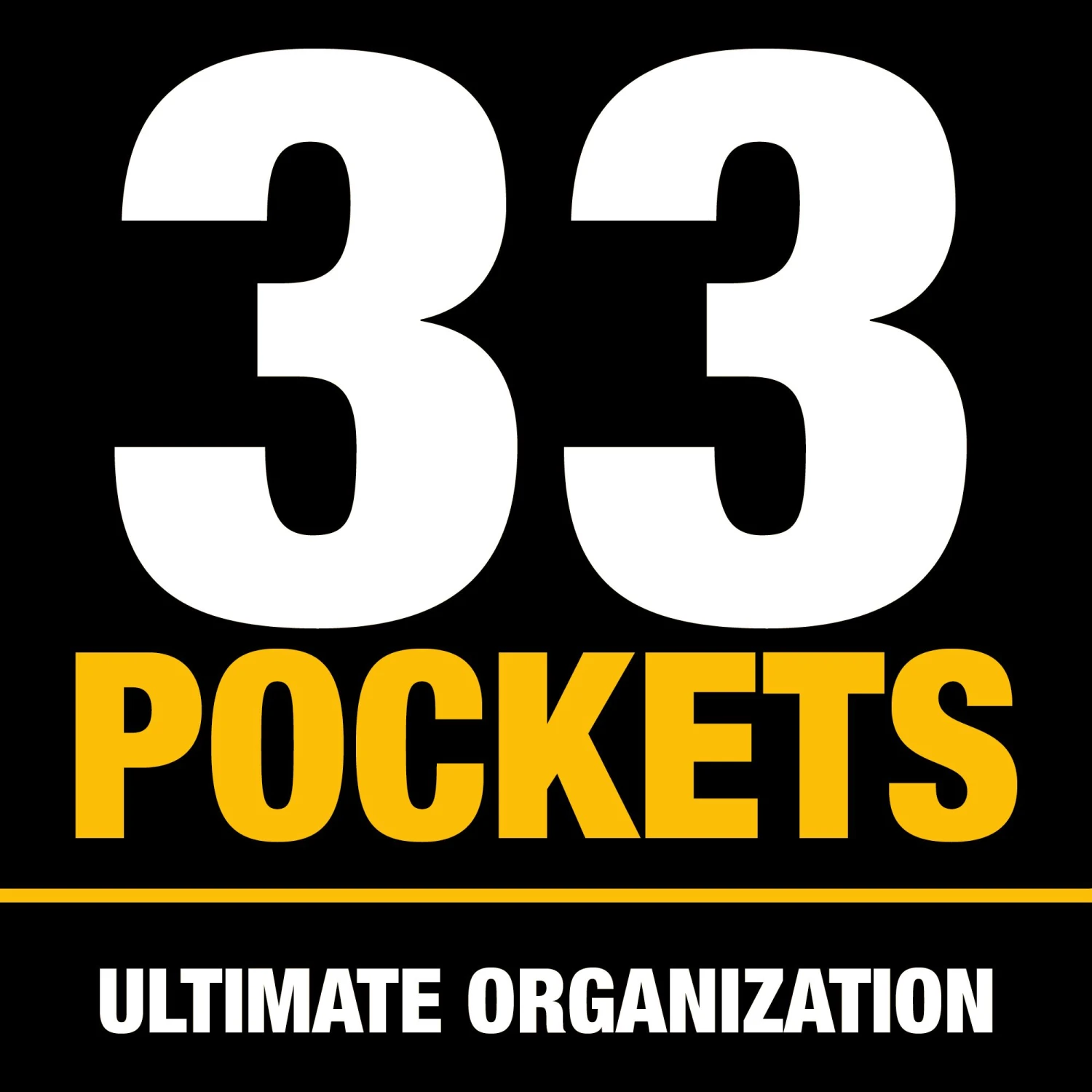 Optimize organization – organize tools with 33 pockets, including a dedicated pocket for a cordless drill and battery