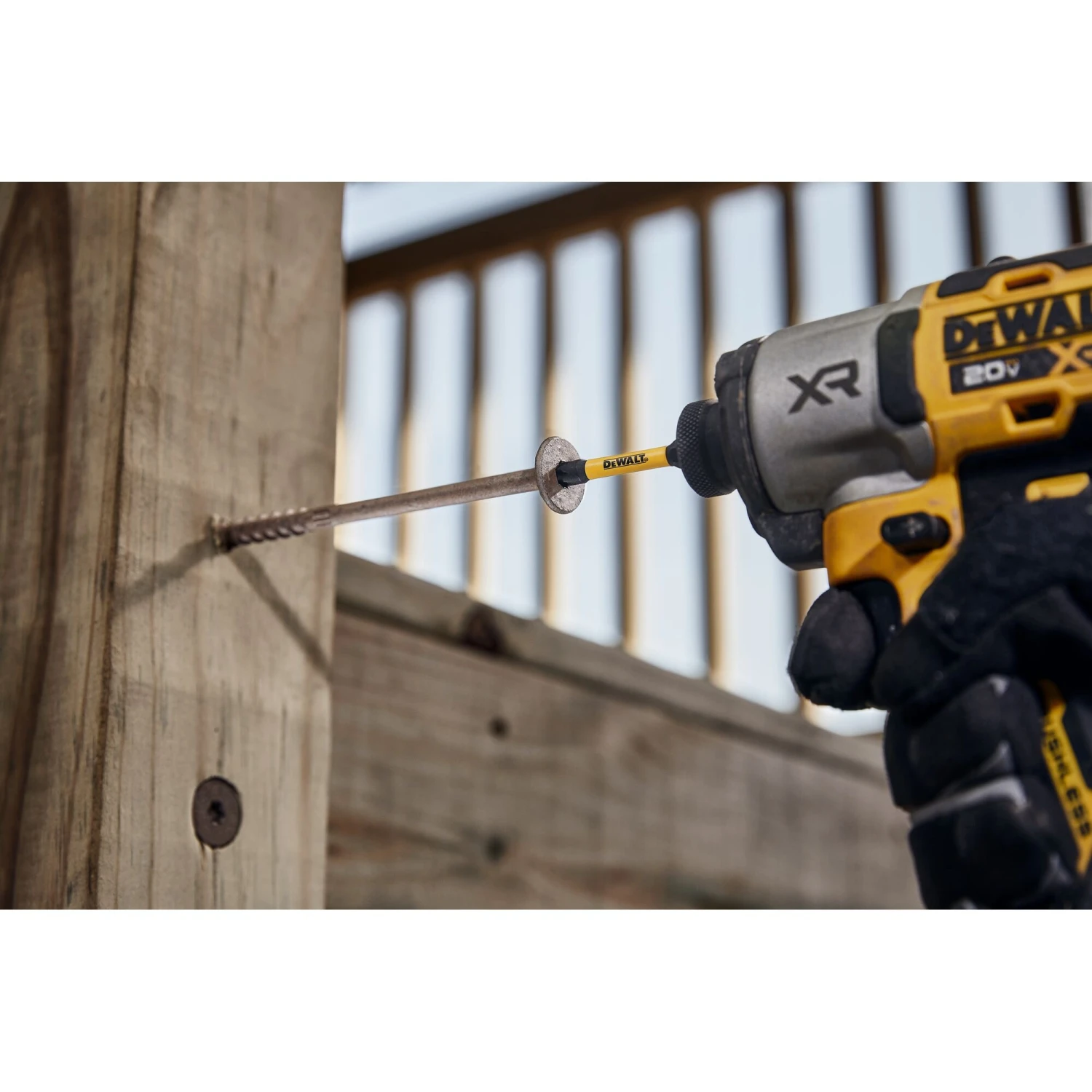 DISCLAIMERS: *On average vs standard DEWALT® screwdriving bits (see chart); †Bit life while setting screws vs Milwaukee® Shockwave® PH2 screwdriving bits; **Screw engagement vs Milwaukee® Shockwave® T20, T25, T30, and T40 screwdriving bits; ‡T10, T15, T20, T25, T27, T30 and T40 are trademarks of Acument Intellectual Properties, LLC, used without permission to indicate compatibility; Milwaukee and Shockwave are registered trademarks of Milwaukee Electric Tool Corp, which has not endorsed or approved this comparison