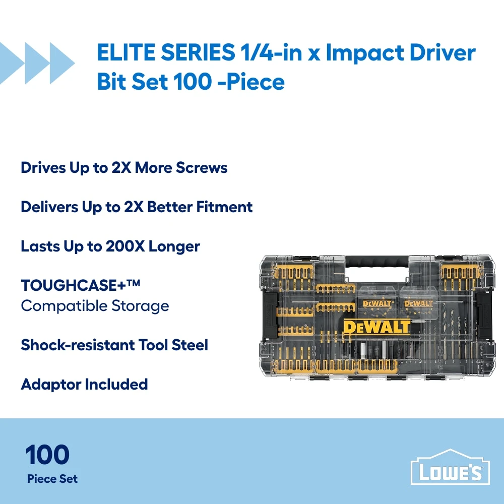 Engineered to combat heavy usage, DEWALT ELITE SERIES® Impact Bits feature a FLEXTORQ® Zone specifically designed to absorb impact for longer life*. Each DEWALT ELITE SERIES® PH2 bit deliver up to 2X more screws per bit vs. Milwaukee®†. Bits for use with T20 to T40 size fasteners‡ features optimized tip geometries, offering up to 2X better fitment vs. Milwaukee®**. The laser-etched, highly-visible sizes help you find the right bit fast.