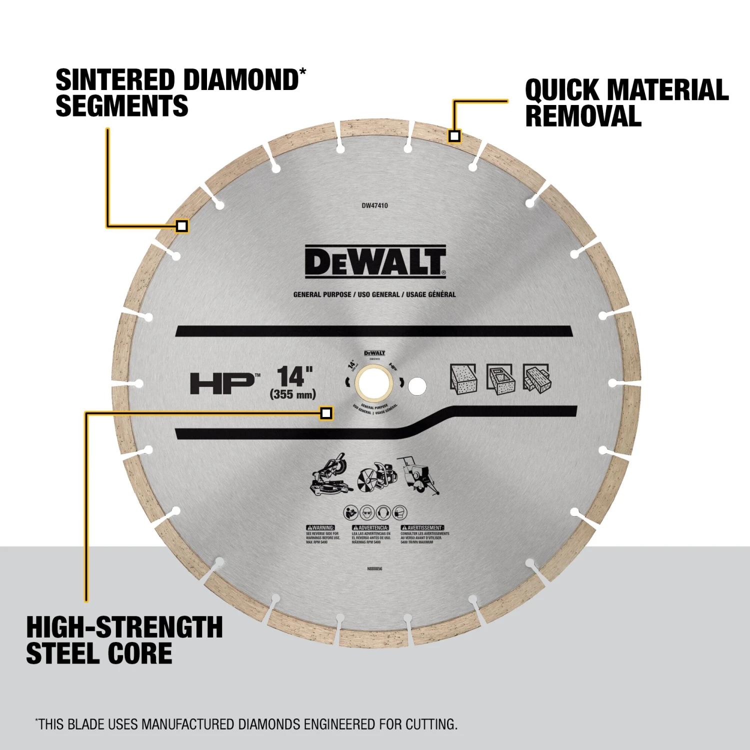 OPTIMAL VERSATILITY: Execute quality cuts on a variety of materials with sintered diamond segments including concrete, brick, and block