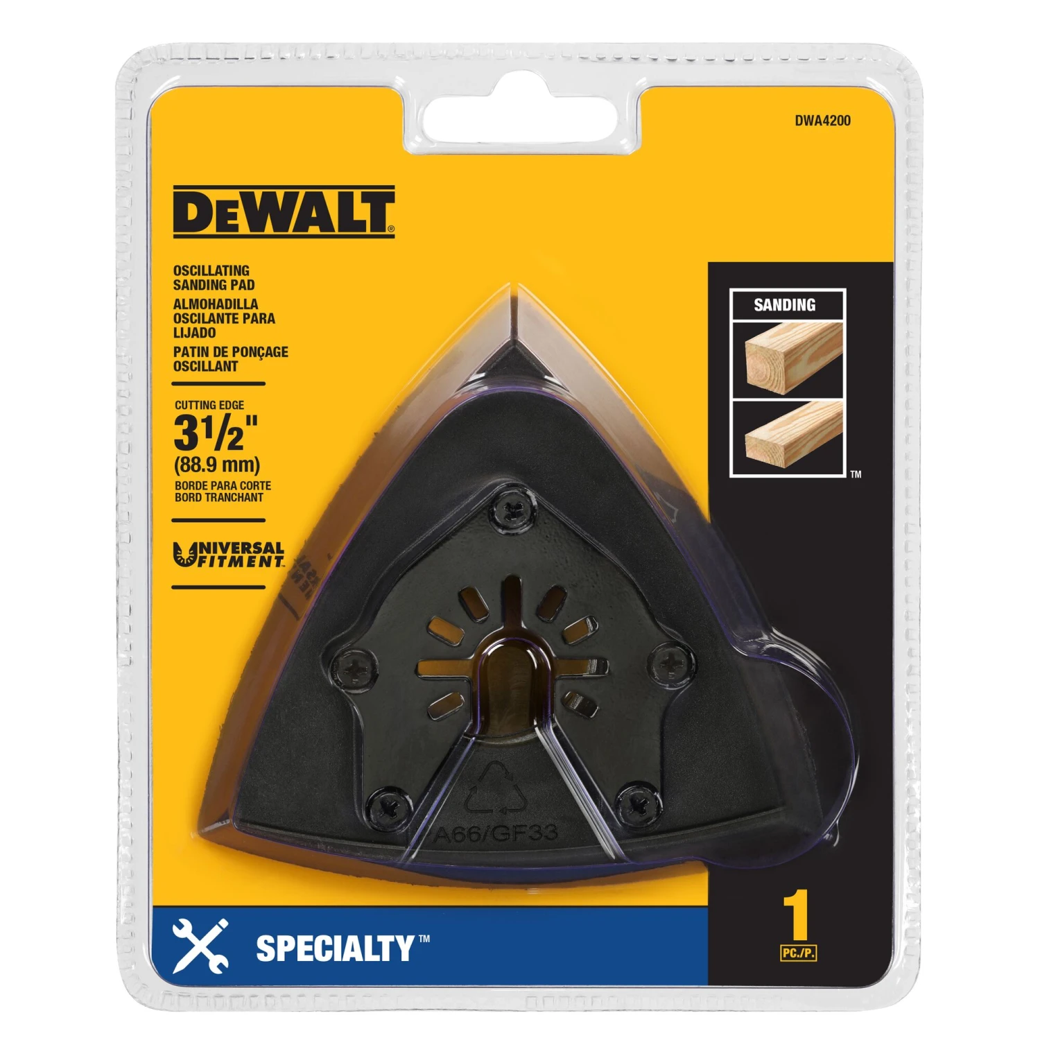 The DEWALT® DWA4200 oscillating sanding pad is designed with universal fitment for quick, tool-free blade change. This sanding pad design provides long life for a multitude of sanding projects.