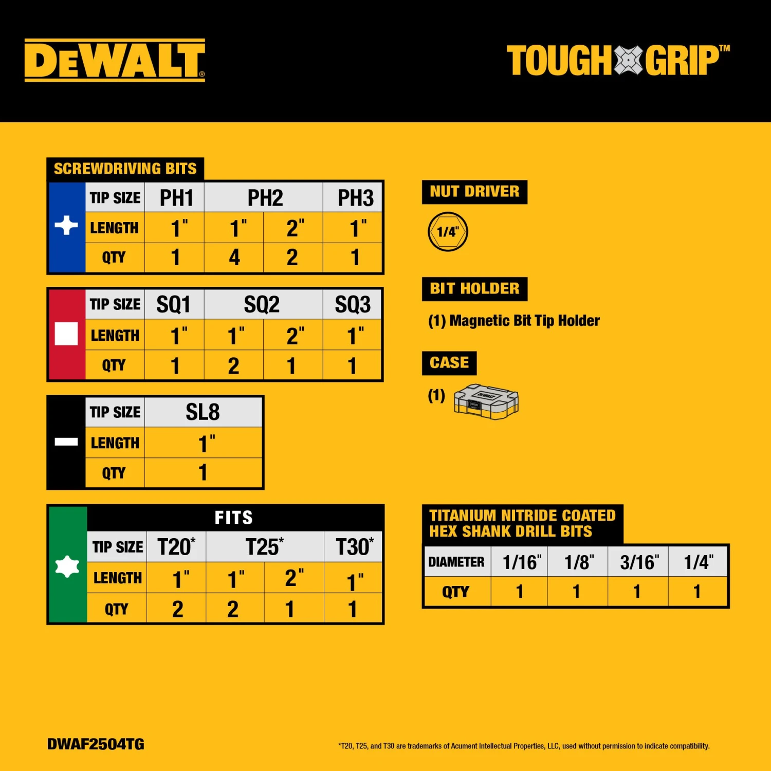 Bit combo sets packed in the TOUGH CASE+ System: Keep bit sets organized in the TOUGH CASE®+ System designed for at-a-glance bit identification and quick removal (available with combo sets only)