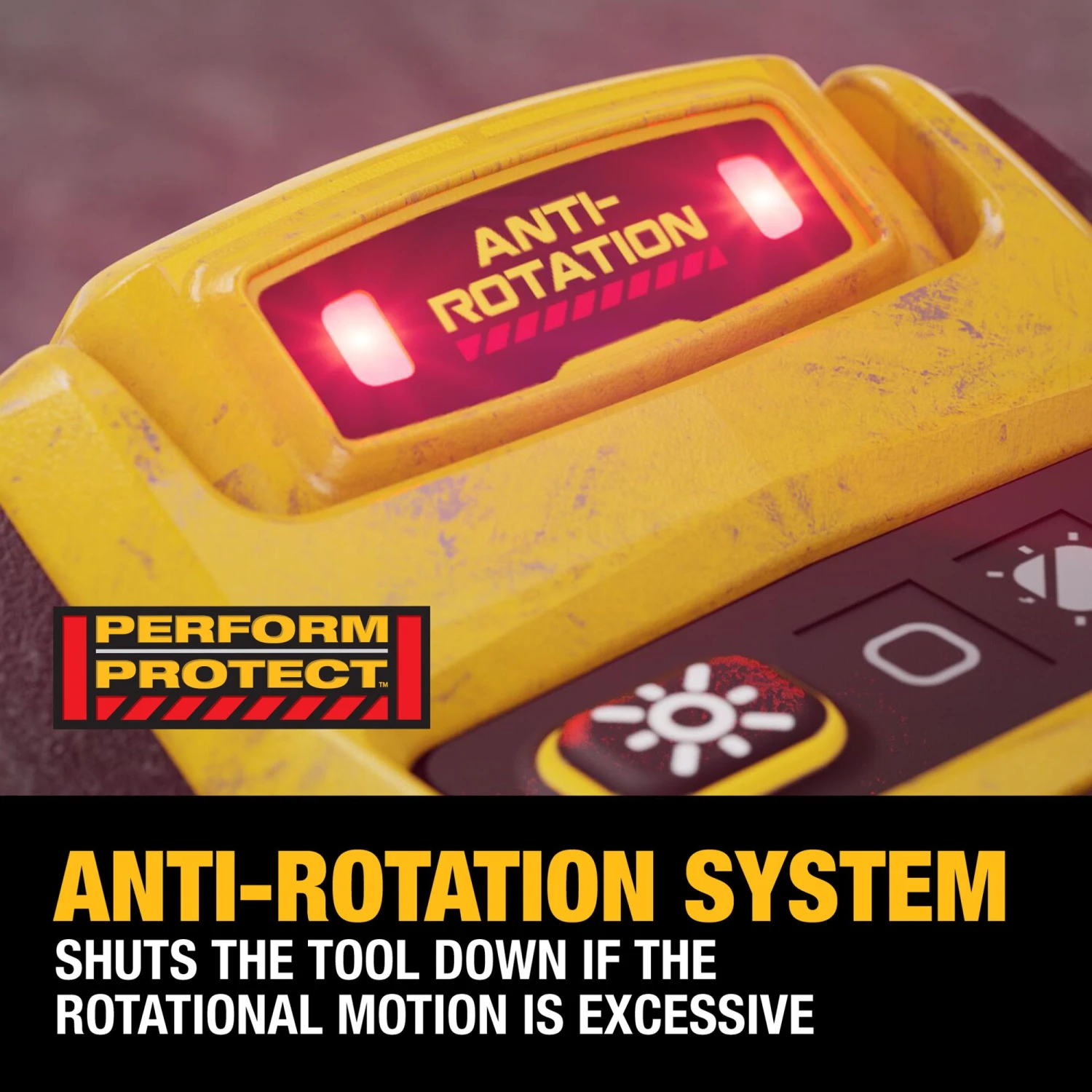 Help maximize control: Equipped with the ANTI-ROTATION System that senses the rotational motion of the tool and shuts it down if the motion is excessive